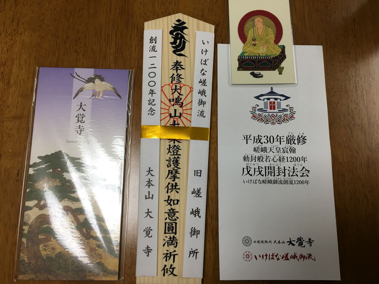 京都大覚寺のお庭での行事のあと、帰りのバス内にて有難くも記念品を賜りました。